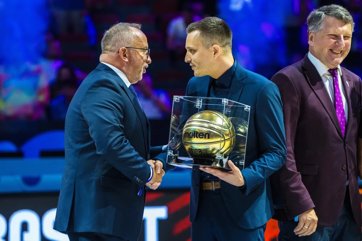 A historic moment took place at Arena Riga during halftime of the Third-Place Game. The official co-hosts of FIBA EuroBasket 2025 handed over the emblem and responsibilities to the future hosts of FIBA EuroBasket 2029.